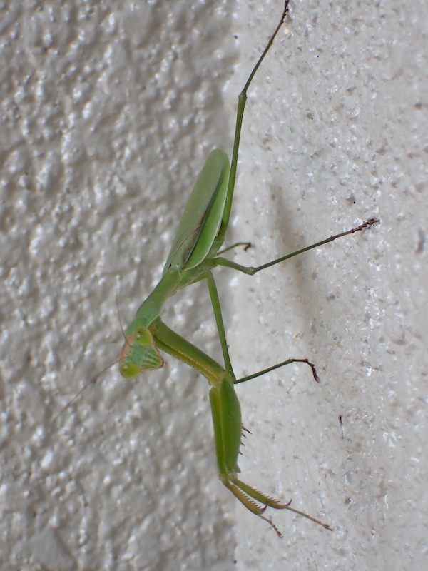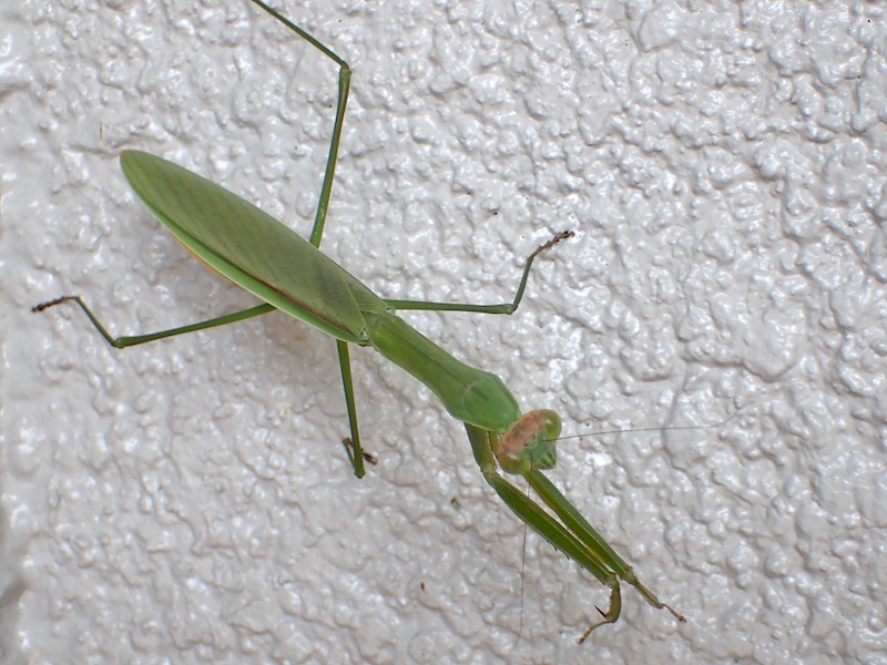 2025.8.28. 今日もオオカマキリ♀の成虫が別の壁にとまっていました。