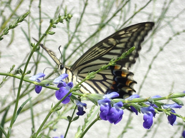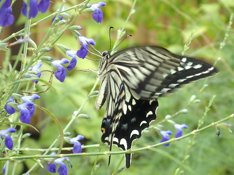 2025.9.18. コバルトセージが咲いて、今年もアゲハチョウが最初に吸蜜に来ました。