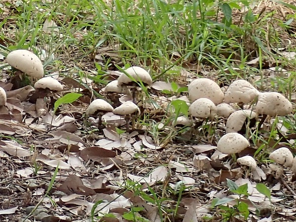 2025.9.20. ドングリの木の周りにオオシロカラカサタケ??? (今日もツクツクボウシが鳴いていました。)