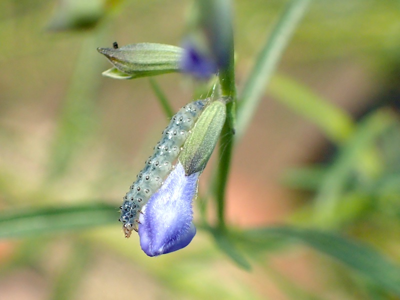 2025.9.29. 15:26 アメリカピンクノメイガの幼虫 (体がコバルト色に??)