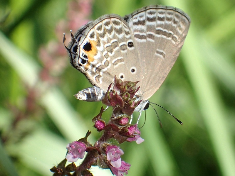 2025.9.30. 9:57 赤ジソの花で吸蜜するクロマダラソテツシジミ ♀