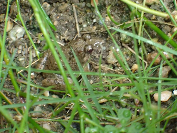 2025.10.4. 雨で出てきたのか、芝草の蔭に9月の初めにもいたヌマガエルがいました。