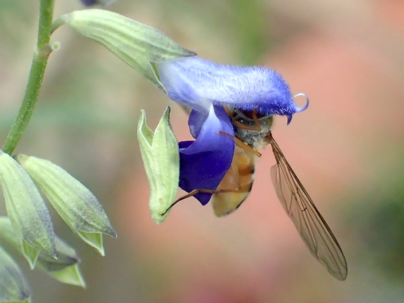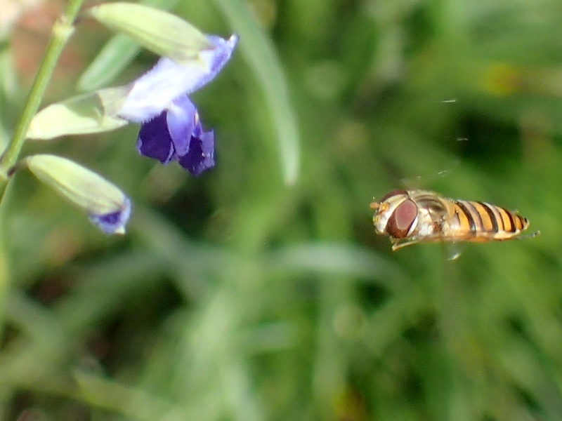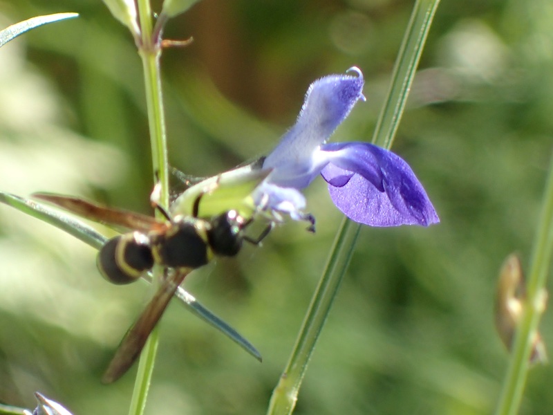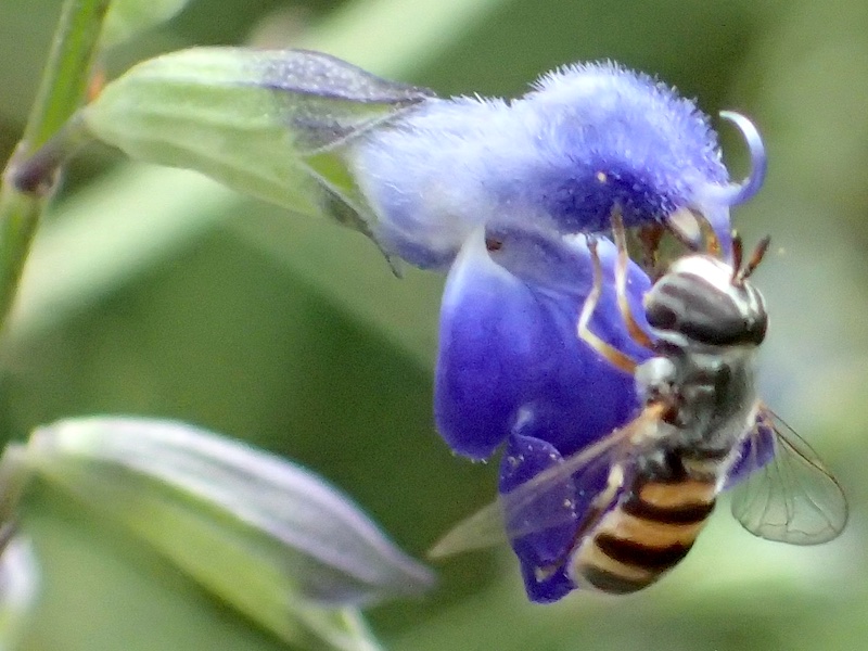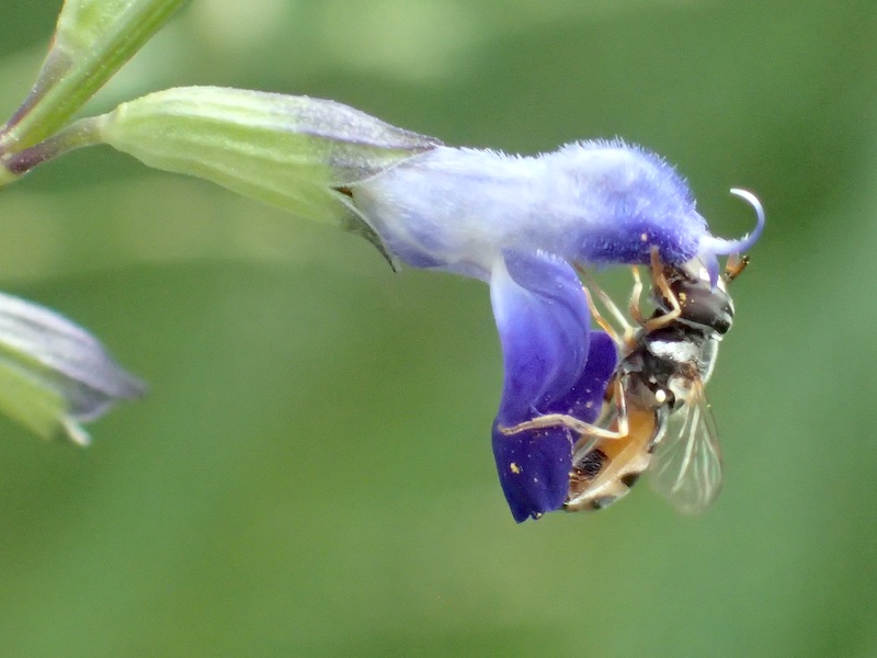 2025.10.9. 9:08 コバルトセージの花とシママメヒラタアブ♀