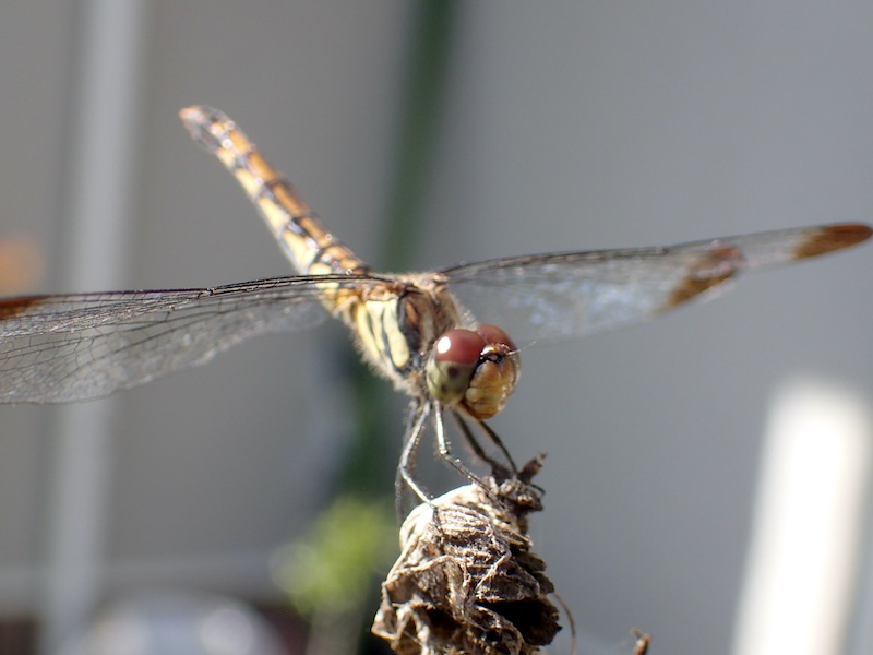 2025.7.15. シオカラトンボの雌が、やって来ました。腹部先端がギリギリ写りました。