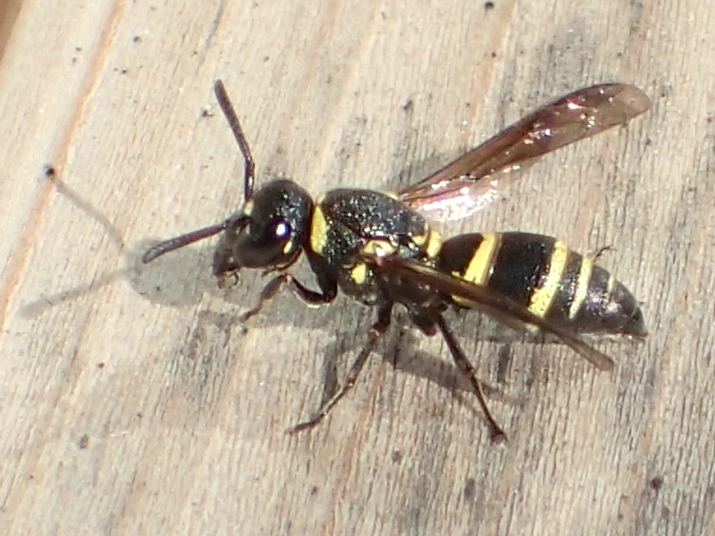 オデコフタオビドロバチのメス成虫は、タケの葉を食べるガの幼虫を毒針で麻酔し、営巣場所である竹筒などに貯蔵し、幼虫の餌とするそうです(神戸大学プレスリリース2022.12.20参照)。