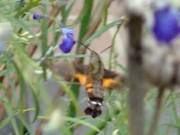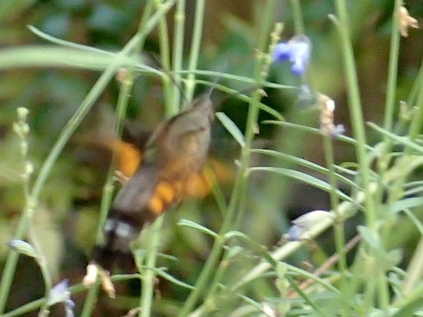 2025.8.1. 8:55-58 セスジスズメ(スズメガ科ホウジャク亜科で、オオスカシバと同じ亜科、コスズメと同属)