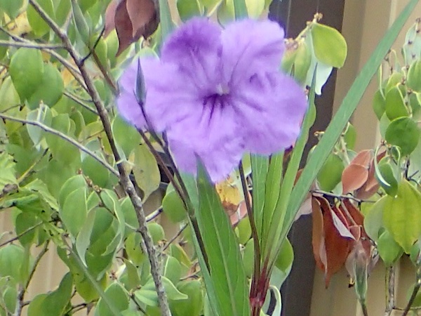 夕方、ホシホウジャクが飛びまわって吸蜜。まだ咲いていた1日花のルエリアの花にも頭を突っ込んでいました。アメリカピンクノメイガも小さなつぼみを探して、産卵していました。