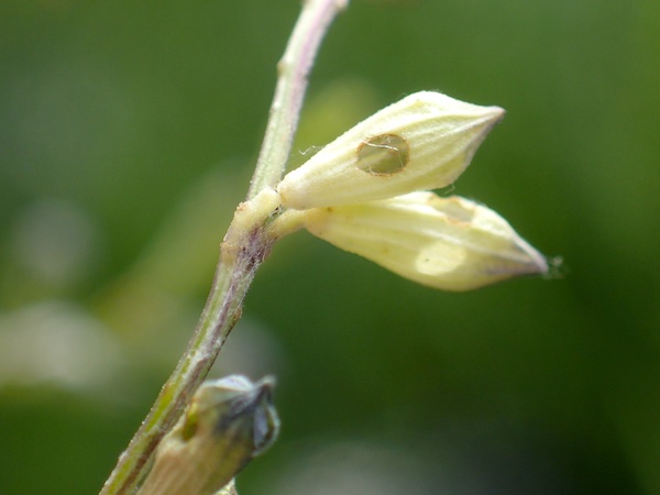 2025.4.4. 13:39 ミツバアケビの花のつぼみ (上が雌花、下が雄花)