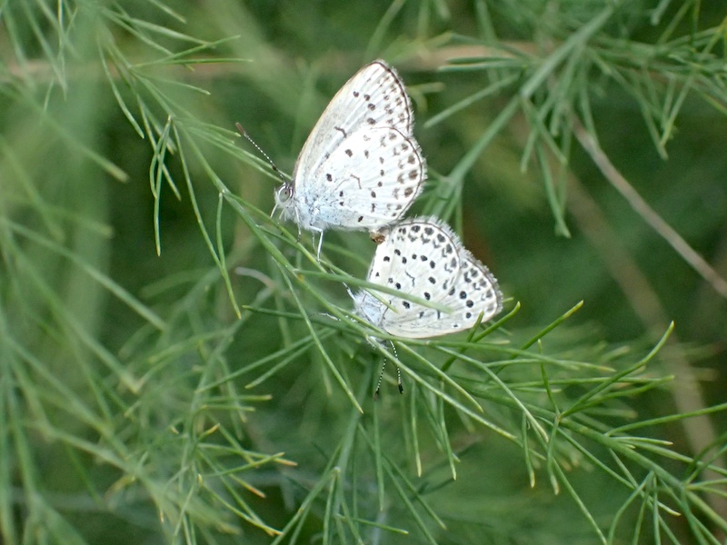 2025.10.11. 17:08 アスパラガスの茎の上で交尾中のヤマトシジミ