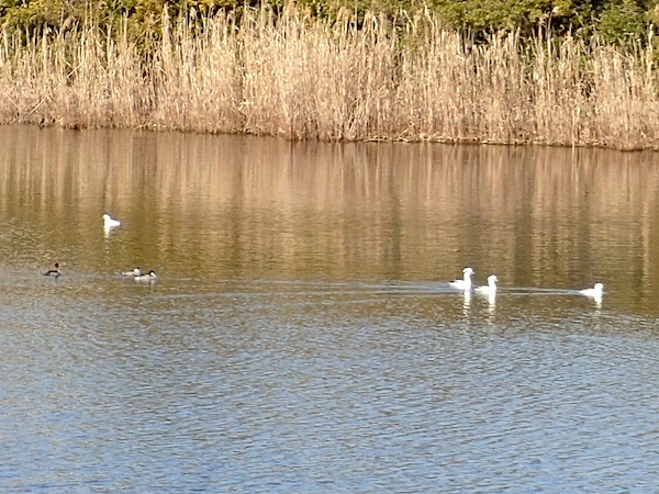 2026.2.2. 晴れて風もなく、近くの池にミコアイサが10羽以上いました。他に、オオバン、アオサギ、カワウ...。