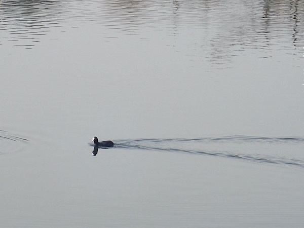 2026.3.22. 近くの池にカモ類は見当たらず、隣の池にはオオバン1、キンクロハジロ約10、マガモ20、ダイサギ1。