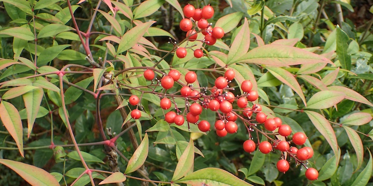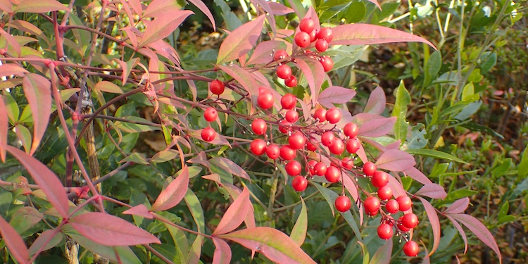 2025.12.19. ナンテンの実が真っ赤になって、葉も赤くなりました。