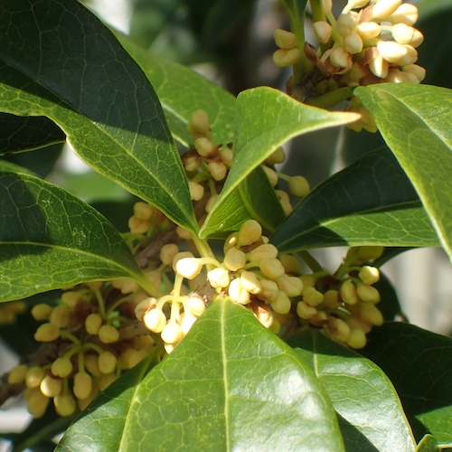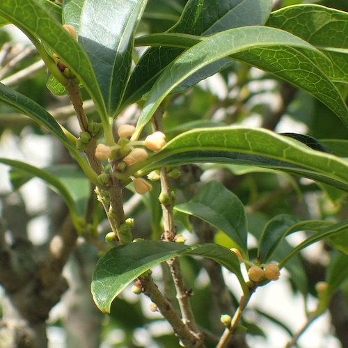 2025.10.11. キンモクセイのつぼみが少しだけ色づき、かすかな香りがしましたが、ちゃんとした開花にはなりませんでした。。