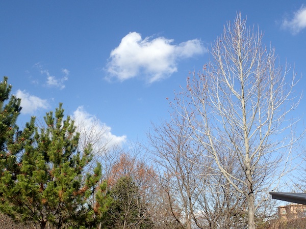 2025.12.5 葉を落としたアメリカフウの木(右端)